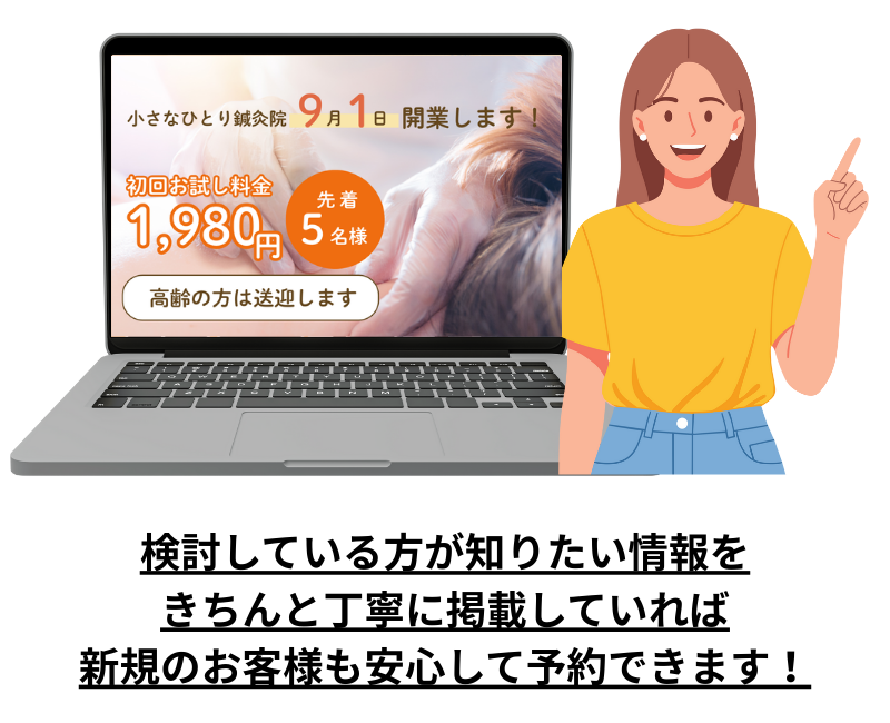 魅力や安心感がきちんと伝わる「専用の新規集客用ページ」があるだけで、
