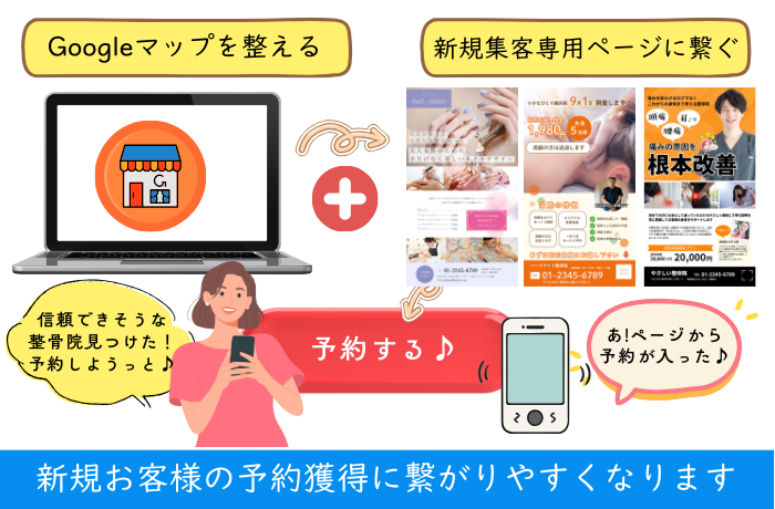 - Googleマップだけでは伝えきれない魅力を、新規集客用ページで補足することで新規顧客獲得につながりやすくなる