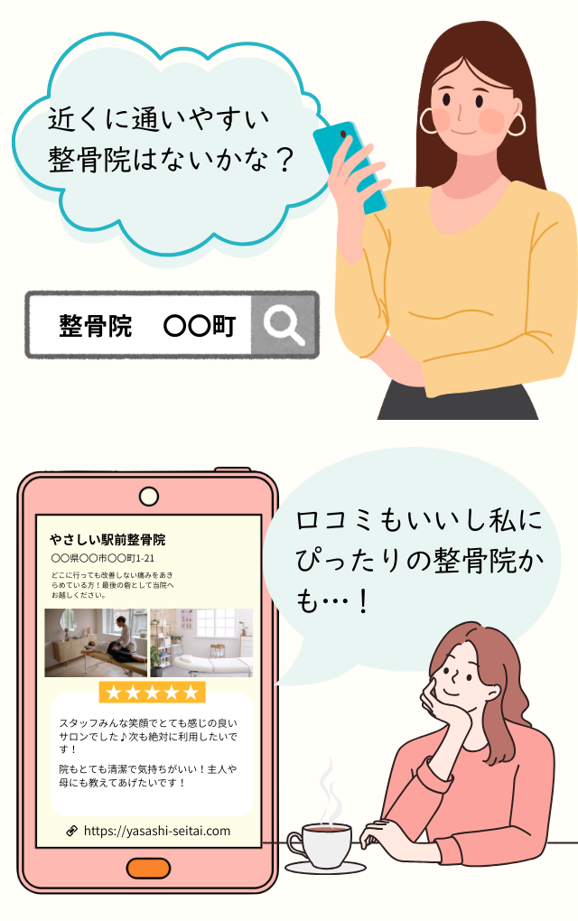 - Googleマップの情報が整っていることで、「丁寧で信頼できる治療院・サロン」という印象を持ってもらえる