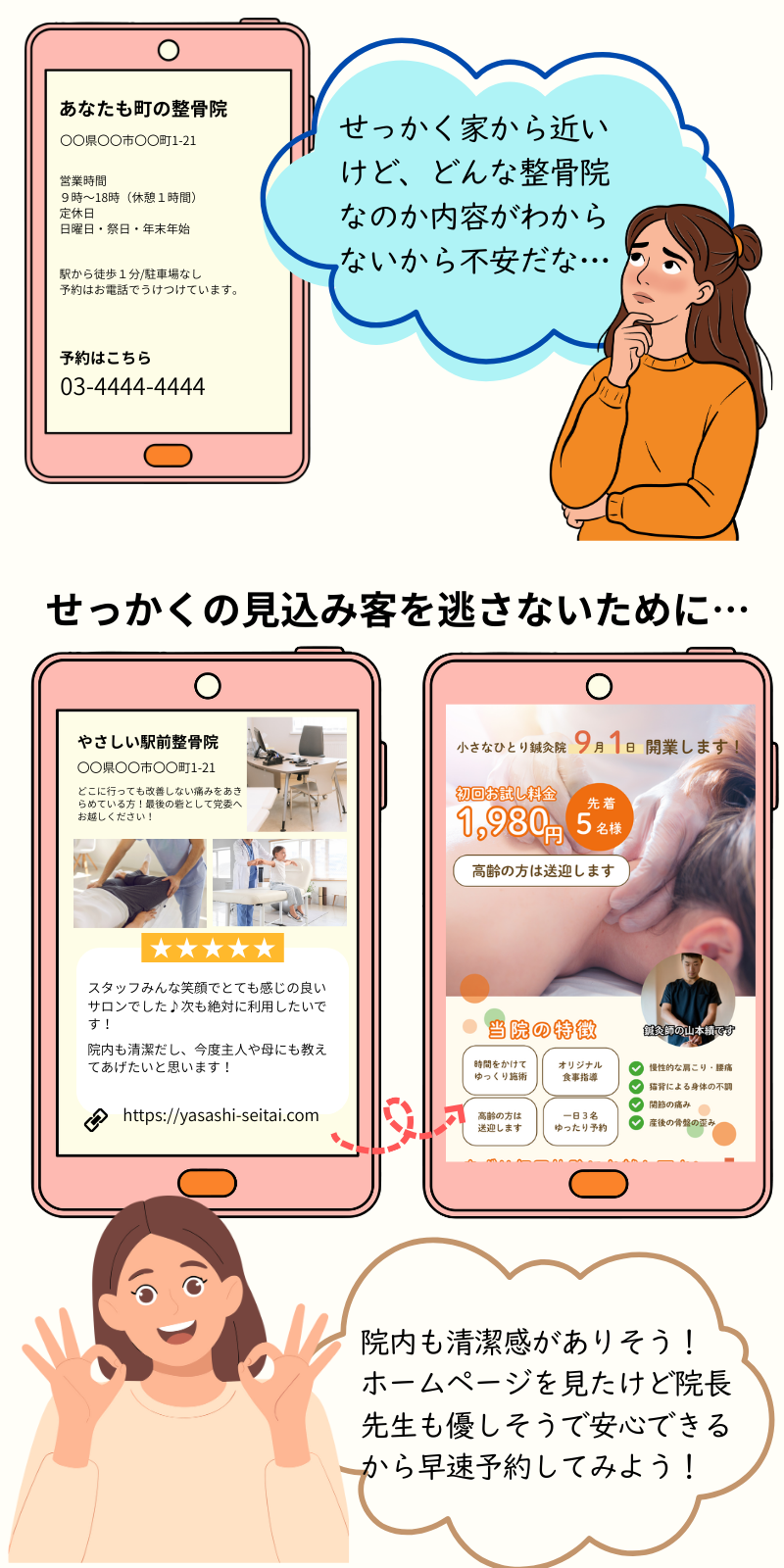 といった、来院・来店前の心理を丁寧に想像することです。